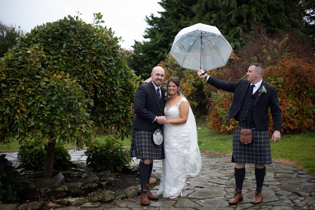 Not only did Chloe and Adam overcome years of postponed plans, but on their long-awaited wedding day they also faced Storm Amy, bringing wild winds and rain to the outskirts of Edinburgh. Lesser spirits might have felt defeated, but not this couple.